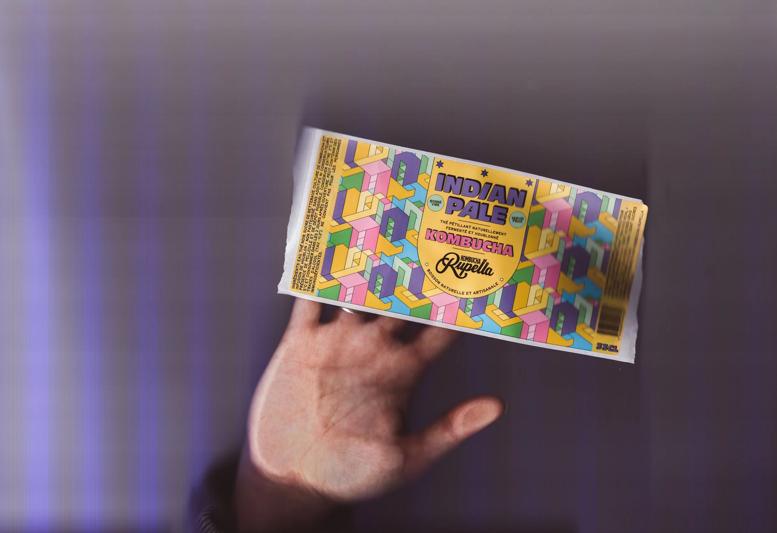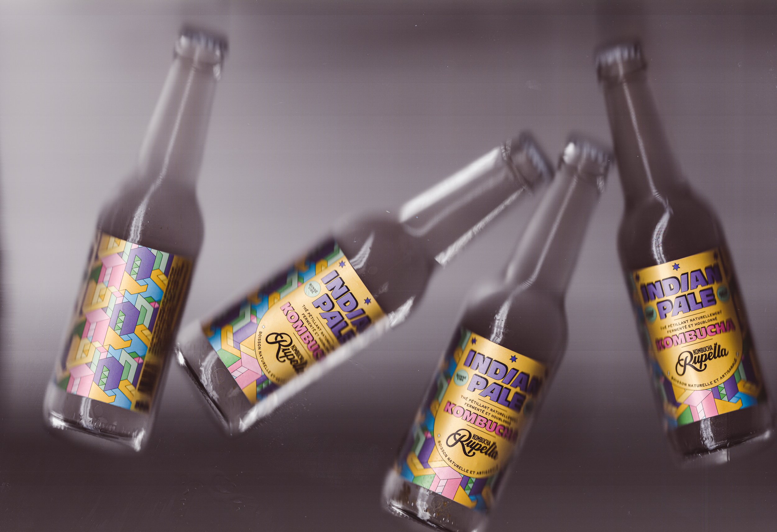 Design d’étiquette - Nicolas Roffé, aka Kombucha Rupella, brasse ses kombuchas artisanaux à La Rochelle depuis 3 ans. Pour cette nouvelle création, il s’est inspiré des craft beers qu’il affectionne : un kombucha houblonné façon IPA. Et avec cette nouvelle gamme, il souhaitait une totale rupture visuelle. J’ai adoré travailler cette ambiance « craft » : full couleurs, typos en légère 3D, vibes américaines.