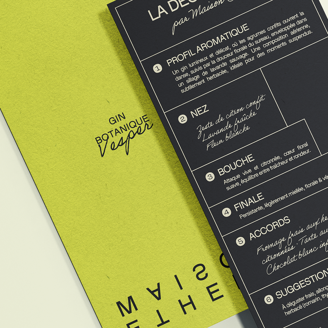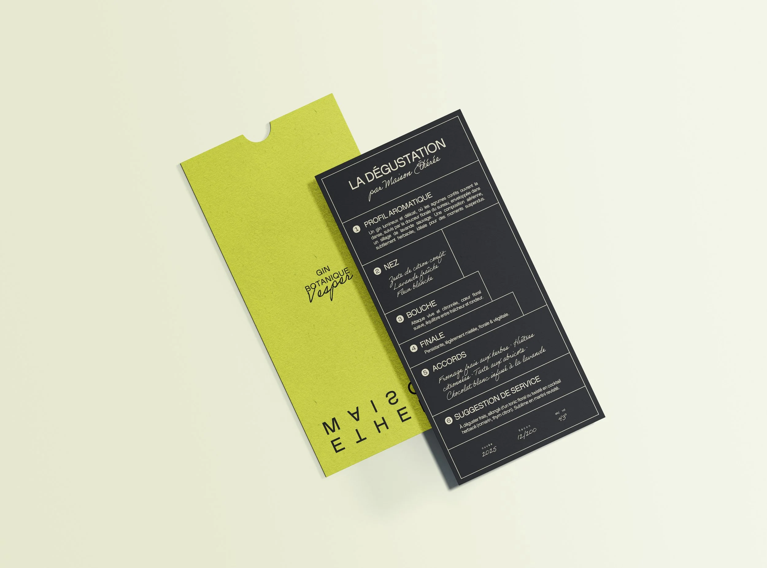Maison Éthérée est un projet de direction artistique autour d’une marque fictive de gin artisanal haut de gamme. Il explore une approche sensible et contemporaine du design packaging, mêlant identité visuelle, esthétisme et narration sensorielle. Étiquettes, cartes de dégustation, choix typographiques et matières ont été pensés comme un ensemble cohérent, inspiré par la distillation comme un art invisible, à la fois pur et raffiné. Ce projet reflète mon goût pour le détail, les marques à forte identité et la création d’objets imprimés porteurs de sens.